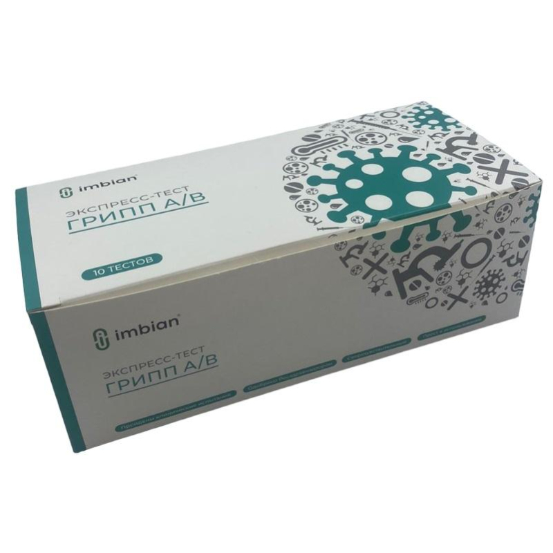 Экспресс-тест для качественного иммунохроматографического определения in vitro антигенов вируса гриппа типов А и В в образцах назальных мазков. Комплектация: тест-кассета - 10 шт, флакон-капельница с буферным раствором (4 мл) - 1 шт, пипетка Пастера (0,25 мл) (РУ № РЗН 2019/8912) - 10 шт, микропробирка (1,8 мл) - 10 шт, подставка под микропробирки - 1 шт, тампон-зонд полимерный с хлопковым наконечником (РУ № ФСЗ 2012/11857) - 10 шт, инструкция по применению - 1 шт.
