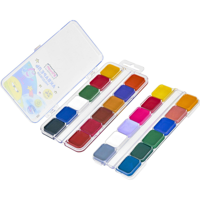 Краски акварельные Комус Класс Максики медовые обладают богатой цветовой гаммой и эффектом прозрачности. Они легкорастворимы, равномерно ложатся на бумажную поверхность и не оставляют запахов. Особенностью этой акварели является наличие в ее составе меда. Он играет роль связующего вещества, а также влияет на экологичность и безопасность продукта. Полусухая медовая акварель Комус Класс Максики отличается насыщенным цветом и простотой в применении. Упаковка представляет из себя пластиковый бокс объемом 188х90х17 мм с 24 кюветами для каждого из цветов (включая белый). Кисточка в набор не входит.