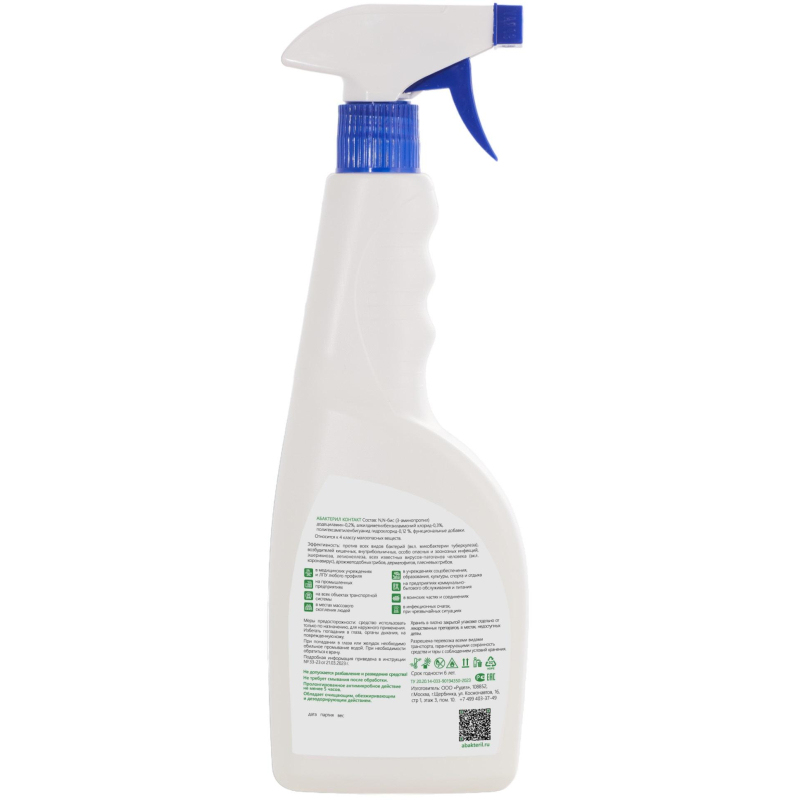 Средство эффективно против всех видов бактерий (включая микобактерии туберкулеза), возбудителей внутрибольничных, особо опасных и зоонозных инфекций, эшерихиоза, легионеллеза, всех известных вирусов-патогенов человека (включая коронавирус), дрожжеподобных грибов, дерматофитов, плесневых грибов. Пролонгированное антимикробное действие не менее 5 часов. Обладает очищающим, обезжиривающим и дезодорирующим действием. Эффективен против биопленок. Сохраняет свои свойства после замерзания и последующего оттаивания. Не допускается разбавление и разведение средства! Не требует смывания после обработки.