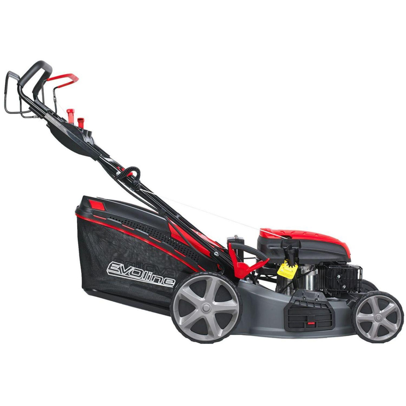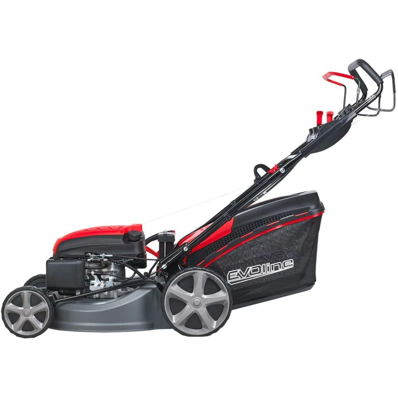 Газонокосилка бензиновая Evoline LMG 53 CV Артикул: LMG53CV Самоходная бензиновая газонокосилка Evoline LMG 53 CV является одной из 5-ти моделей бензиновых газонокосилок премиум сегмента для коммерческого и домашнего использования. Это устройство идеально подойдет для поддержания здорового и ухоженного газона тем, кому важна эффективность и высокая производительность во время работы. Преимущества: Бензиновый двигатель Evoline: 196 куб. см на 4,2 кВт / 5,6 л.с.; Самоходная модель с вариатором; Ширина кошения 53 см.; Регулировка высоты кошения от 25 до 75 мм; 4 режима работы: травосборник, боковой и задний выброс, мульчирование; Комбинированный травосборник объемом до 70 л; Эргономичная рукоятка с антивибрационным покрытием; Пластиковая панель оператора с 2-мя подстаканниками; Колеса на двойных подшипниках;
