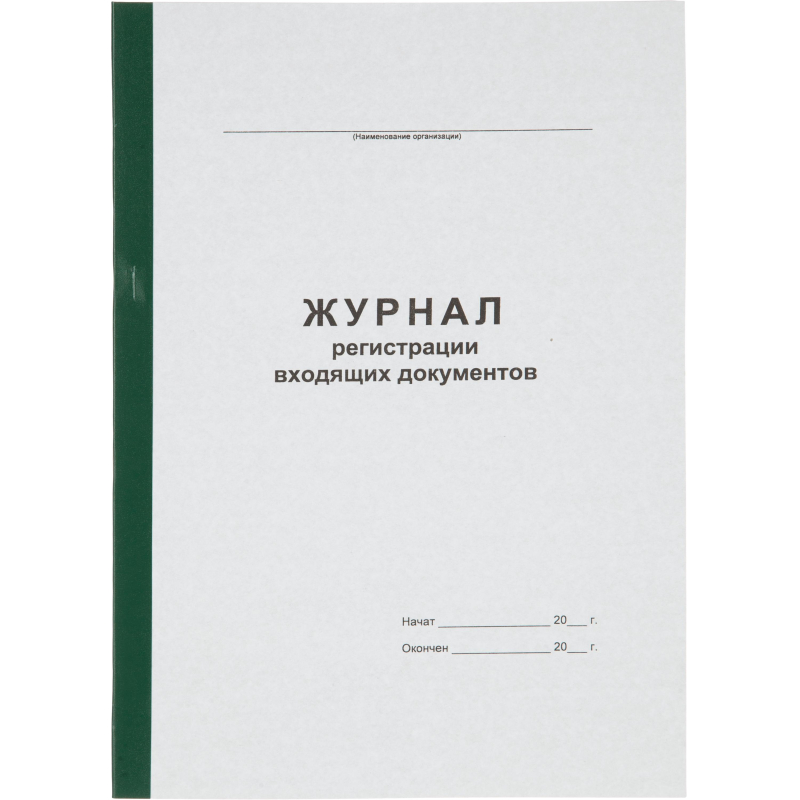 Журнал регистрации входящих документов формата А4. Обложка из картона с бумвинильным корешком. Внутренний блок - офсетнапя бумага 55 г/кв. Журнал скреплен с помощью скрепок и проклеен бумвинильной полосой. Количество листов 96.