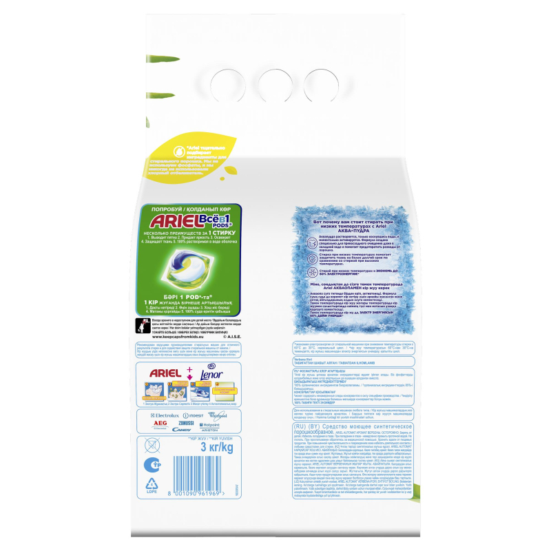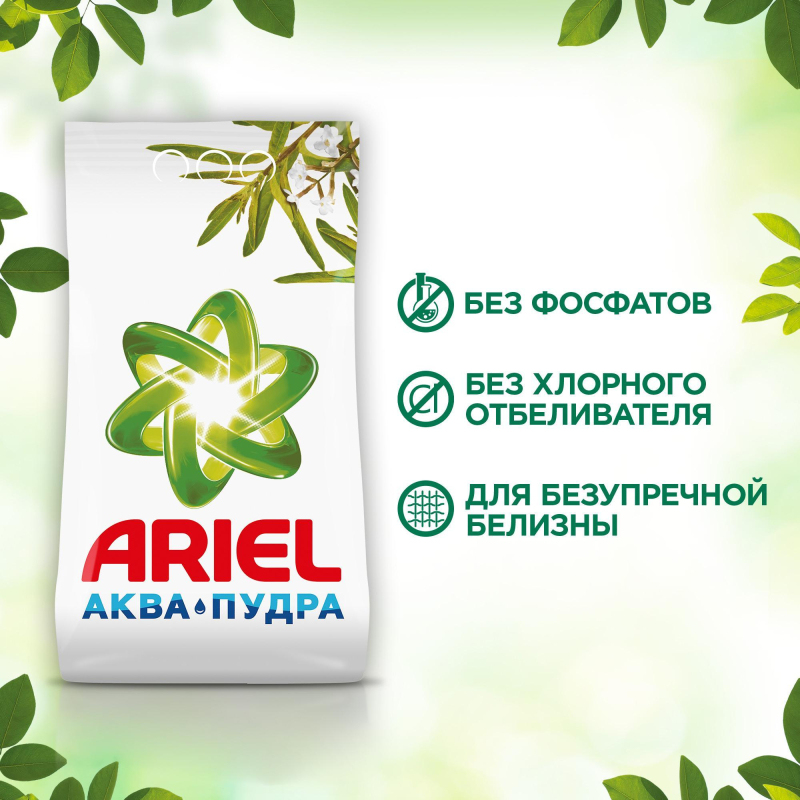 Безупречная чистота вашей одежды и мягкий аромат, вдохновленный природой, помогают создать прекрасное настроение и почувствовать близость к природе. Именно для этого мы создали стиральный порошок Ariel Аквапудра с ароматом вербены, вдохновленный природой. Ariel Аквапудра растворяется, едва коснувшись воды, и моментально активируется: удаляет трудновыводимые пятна, глубоко проникая в структуру волокон, и не дает загрязнениям въедаться. Порошок устраняет загрязнения, вызывающие неприятные запахи, такие как запах пота и тела, придавая одежде приятный аромат и сияющую чистоту даже на воротничках и манжетах рубашек. Если у вас чувствительная кожа, рекомендуем обратить внимание на гипоаллергенную коллекцию Ariel для чувствительной кожи. Преимущества Ariel Аквапудра: Безупречное удаление пятен с первой стирки даже при 30°C - 0% фосфатов и хлорсодержащего отбеливателя; Средство быстро растворяется, не оставляя следов на одежде; Придает одежде легкий природный аромат вербены. Безопасность превыше всего. Мы никогда не используем фосфаты или хлор. Для отбеливания мы подбираем кислородосодержащие отбеливатели и безопасные дозировки. Все активные компоненты полностью биоразлагаемы. Теперь ваши любимые вещи прослужат вам еще дольше.