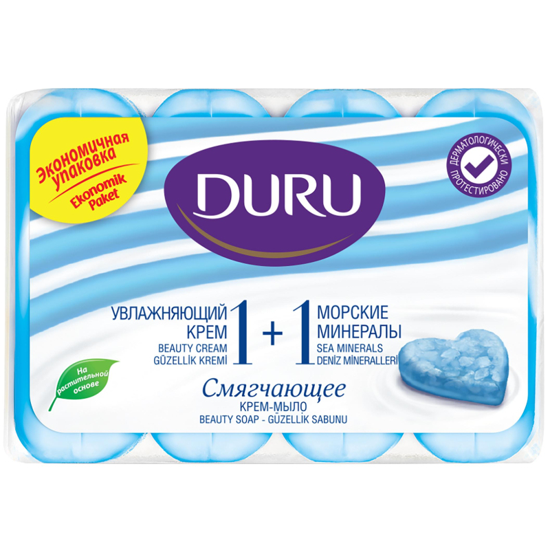 Duru 1+1 Морские минералы состоит из крема и мыла. Увлажняющий крем заботится о вашей коже, а морские минералы дарят ощущение чистоты и заряд бодрости. Ощутите прикосновение нежности с Duru 1+1 Морские минералы. Состав (INCI): AQUA, SODIUM LAURETH SULFATE, SODIUM CHLORIDE, COCAMIDOPROPYL BETAINE, GLYCERIN, PARFUM, PEG-4 RAPESEEDAMIDE, SODIUM BENZOATE, SODIUM SALICYLATE, STYRENE ACRYLATES COPOLYMER, SEA SALT, FUCUS VESICULOSUS EXTRACT, LAMINARIA DIGITATA EXTRACT, LAMINARIA HYPERBOREA EXTRACT, PROPYLENE GLYCOL, POTASSIUM SORBATE, TETRASODIUM EDTA, SODIUM PCA, CITRIC ACID, COUMARIN, LIMONENE, CI 42090, CI 60730. В наборе 4 штуки.