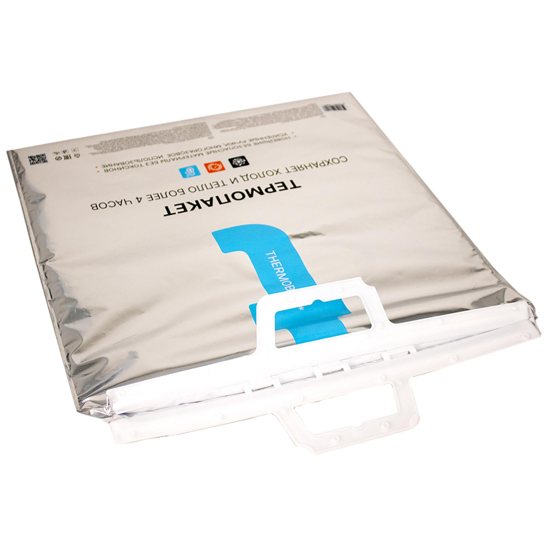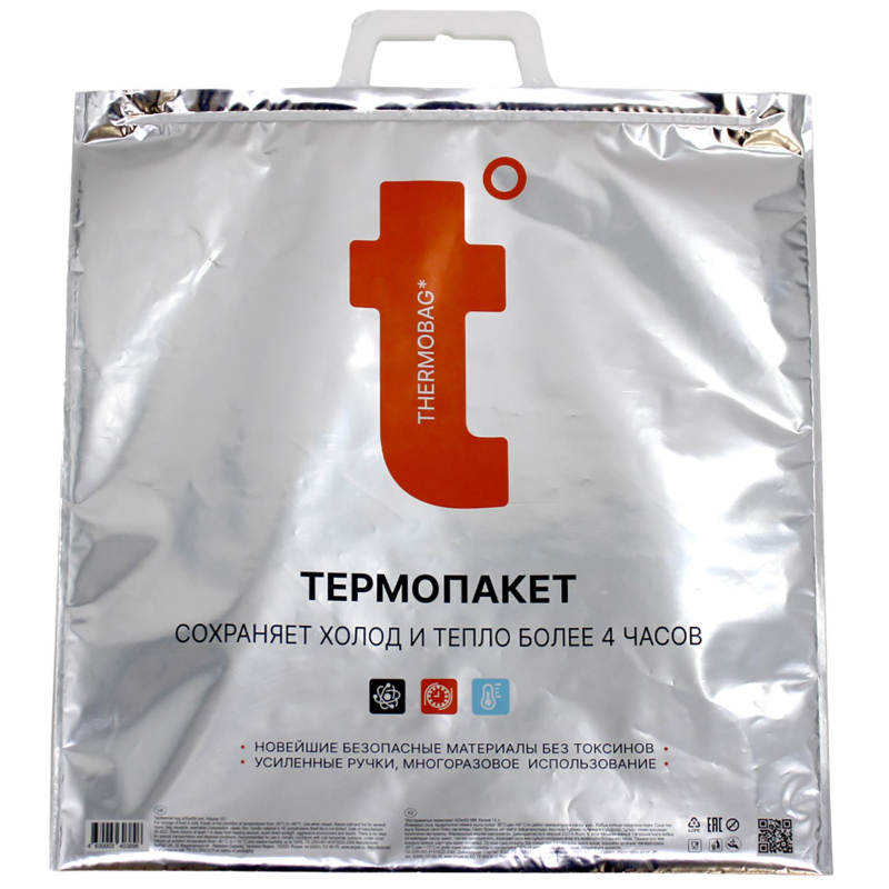 Трехслойный термопакет размером 42x45 см и вместимостью до 15 литров предназначен для доставки и сохранения замороженных, охлажденных и горячих продуктов. Плотно закрывающийся термопакет сохраняет тепло и холод более 4-х часов. Представляет собой многослойную структуру: внутренний слой-полиэтилен высокого давления, внешний слой которой - металлизированная пленка, средний слой - теплоизоляционный из пенополиэтилена. Удобная пластиковая ручка термопакета с усиленной клипсой-защелкой не пружинит и не тянется и, главное, не расстегнется. Это препятствует легкому попаданию воздуха внутрь термопакета - продукт сохраняет свою температуру значительно дольше. Термопакет может применяться неоднократно - легко мыть и использовать, выдерживает до 10 кг. Срок годности не ограничен. Изотермические свойства термопакета для замороженных продуктов улучшаются с применением аккумуляторов холода.