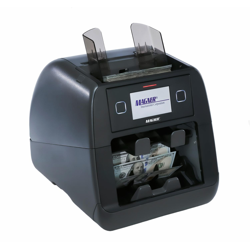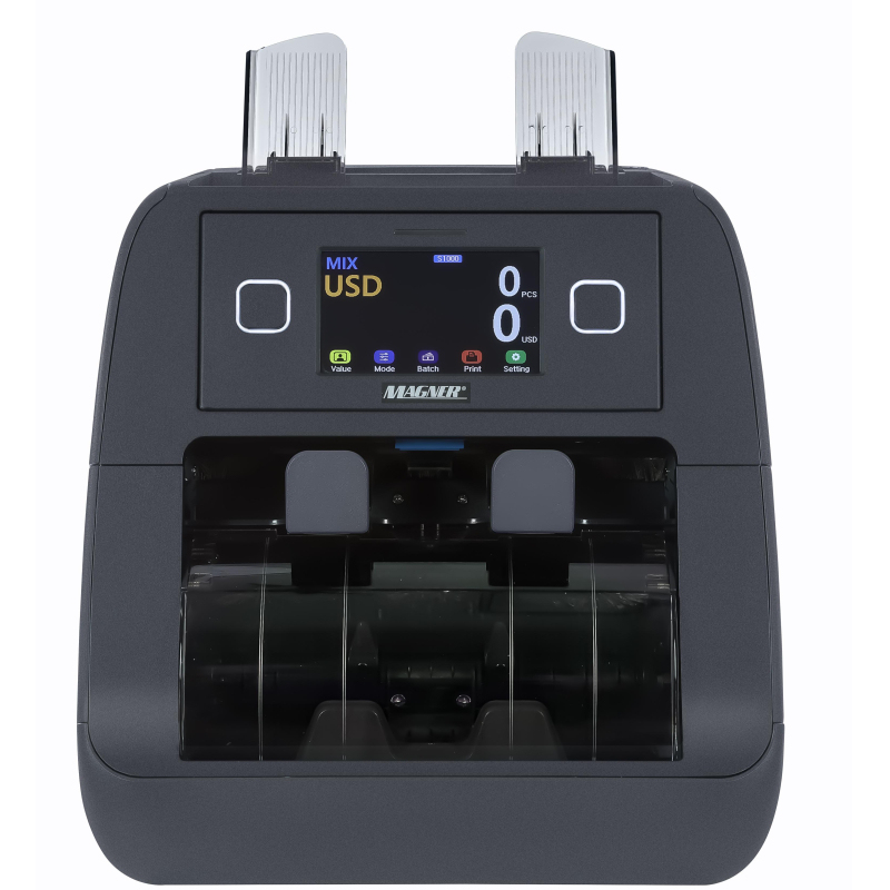 Счетчик-сортировщик банкнот Magner 2000V обладает ультрасовременными функциями: - Мультивалютный пересчет банкнот. - Автоматическое определение валют. - Пересчет смешенной пачки банкнот со скоростью 1200 банкнот в минуту. - Сортировка банкнот по номиналам. - Сортировка по лицу и ориентации банкнот. - Сенсорное управление и регулировка положения дисплея. - Формирование заданной суммы либо количества пачки. - Сканирование, распознавание и сравнение серийных номеров банкнот. - Инновационные технологии контроля подлинности банкнот. - Автоматизированная защита пользователя от денежной пыли и вредных бактерий.