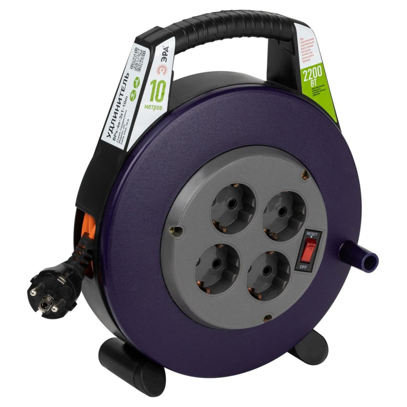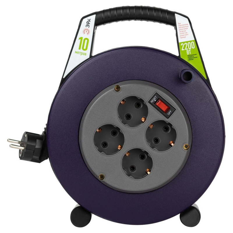 Удлинитель на катушке полипропилен ЭРА ПВС 3x1.0 кв.мм. 10 м 10 А 2200 Вт IP20 с заземлением 4 розетки Б0052927 в закрытом корпусе позволяет легко подключить удаленное на расстоянии от стационарной розетки электрооборудование суммарной мощностью до 2,2КВт. Закрытый корпус обеспечивает удобное и безопасное использование, а также хранение удлинителя. Удобная ручка позволяет легко передвигать удлинитель и устанавливать его в нужном для подключения месте. Внешний вид и/или характеристики товара могут быть изменены производителем в соответствии с производственным процессом.