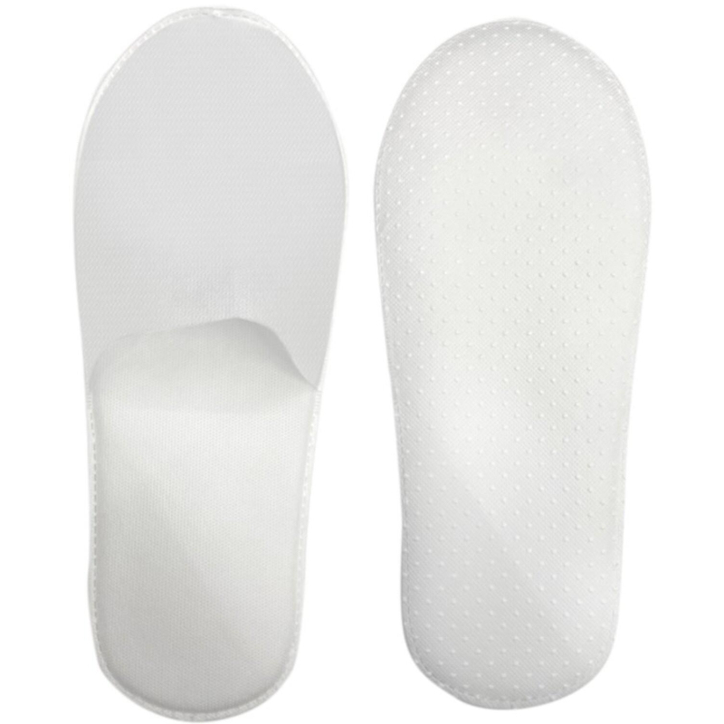 Тапочки одноразовые спанбонд закрытый мыс подошва 5 мм белые (100 пар в упаковке). Одноразовые тапочки на нескользящей подошве предназначены для гостиничных номеров, а также различных медицинских и косметологических учреждений. Верх сделан из нетканого материала спанбонд плотностью 60 г/кв.м. Подошва изготовлена из пенополиэтилена 5 мм и спанбонда плотностью 60 г/кв.м. Каждая пара упакована в индивидуальный полиэтиленовый пакет.