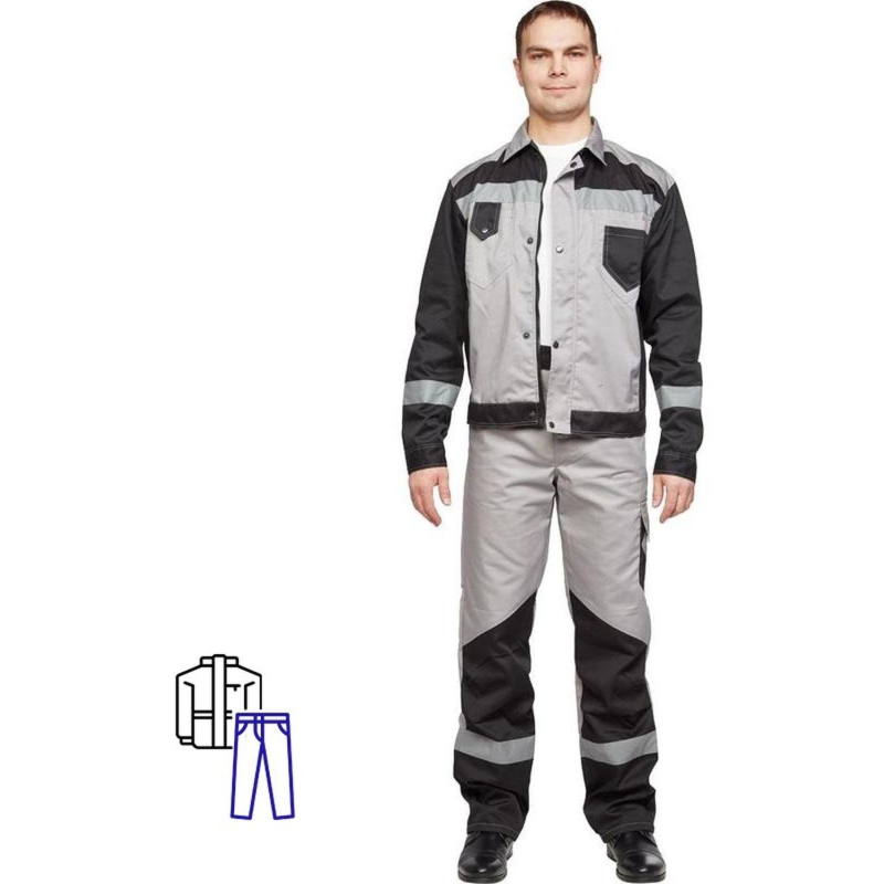 Костюм рабочий летний мужской л21-КБР с СОП серый/черный (размер 44-46, рост 158-164), состоит из куртки и брюк. Изготовлен из смесовой ткани (65% полиэстер, 35% хлопок) плотностью 240 г/кв.м. Светоотражающая полоса шириной 50 мм размещена на груди, спине, рукавах, а также внизу брюк. Куртка c застежкой на молнию и кнопки. На куртке два верхних накладных кармана. Рукава с налокотниками и манжетами. Ширина пояса куртки регулируется кнопками. Брюки прямого силуэта с застежкой на пуговицы. На передней половине брюк расположены два накладных кармана со скошенным входом. На брюках сзади 2 накладных кармана, один из которых на кнопке, а также боковой накладной карман на кнопке. Весь костюм сшит контрастными нитками белого цвета, двойной строчкой. Костюм предназначен для защиты от общих производственных загрязнений и механических воздействий. ГОСТ 12.4.280-2014, ТР ТС 019/2011. Сферы применения: сельское хозяйство, логистика, легкая промышленность, строительство, тяжелая промышленность. Коллекция рабочей одежды л21 представлена двумя видами комплектов: куртка и полукомбинезон л21-КПК, и куртка и брюки Л21-КБР. Законодательные и технические документы: