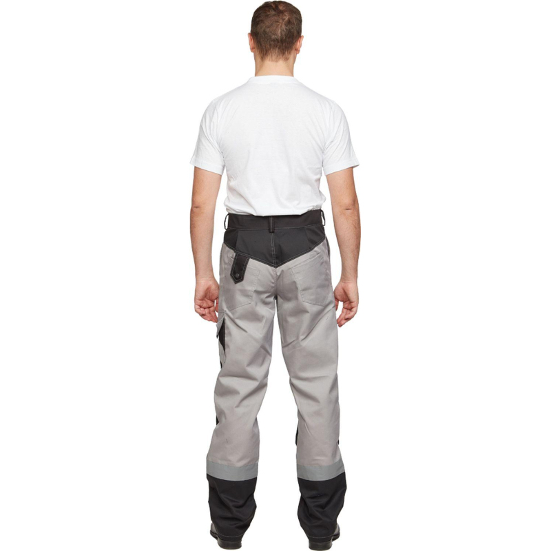 Костюм рабочий летний мужской л21-КБР с СОП серый/черный (размер 48-50, рост 158-164), состоит из куртки и брюк. Изготовлен из смесовой ткани (65% полиэстер, 35% хлопок) плотностью 240 г/кв.м. Светоотражающая полоса шириной 50 мм размещена на груди, спине, рукавах, а также внизу брюк. Куртка c застежкой на молнию и кнопки. На куртке два верхних накладных кармана. Рукава с налокотниками и манжетами. Ширина пояса куртки регулируется кнопками. Брюки прямого силуэта с застежкой на пуговицы. На передней половине брюк расположены два накладных кармана со скошенным входом. На брюках сзади 2 накладных кармана, один из которых на кнопке, а также боковой накладной карман на кнопке. Весь костюм сшит контрастными нитками белого цвета, двойной строчкой. Костюм предназначен для защиты от общих производственных загрязнений и механических воздействий. ГОСТ 12.4.280-2014, ТР ТС 019/2011. Сферы применения: сельское хозяйство, логистика, легкая промышленность, строительство, тяжелая промышленность. Коллекция рабочей одежды л21 представлена двумя видами комплектов: куртка и полукомбинезон л21-КПК, и куртка и брюки Л21-КБР. Законодательные и технические документы: