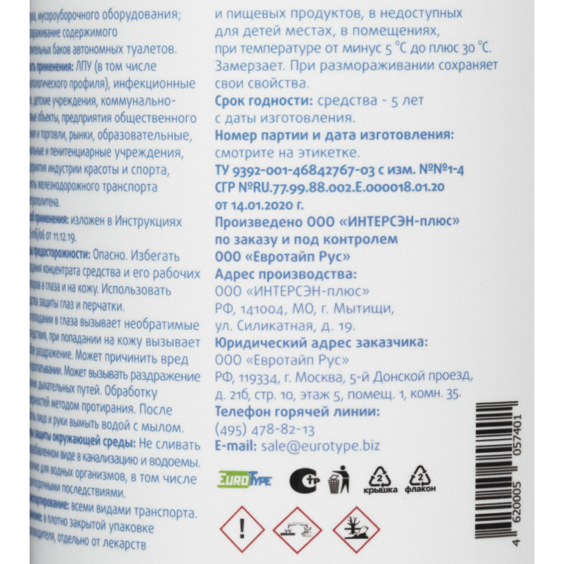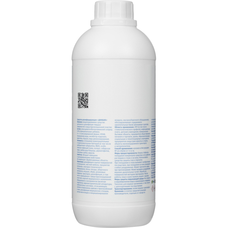 Средство 'Диабак' - прозрачная жидкость от голубого до фиолетового цвета с запахом отдушки, содержит алкилдиметилбензиламмоний хлорид (11%) в качестве действующего вещества, функциональные добавки, активаторы формулы, ингибитор коррозии, а также другие компоненты. Средство хорошо смешивается с водой. Срок годности средства при условии хранения в закрытой упаковке производителя - 5 лет, рабочих растворов - 14 суток. Концентрат и рабочие растворы негорючи, пожаро- и взрывобезопасны, экологически безвредны. Препарат хранят в крытых складских помещениях в местах, защищенных от влаги и солнечных лучей, вдали от нагревательных приборов и открытого огня при температуре от -200°С до +30°С