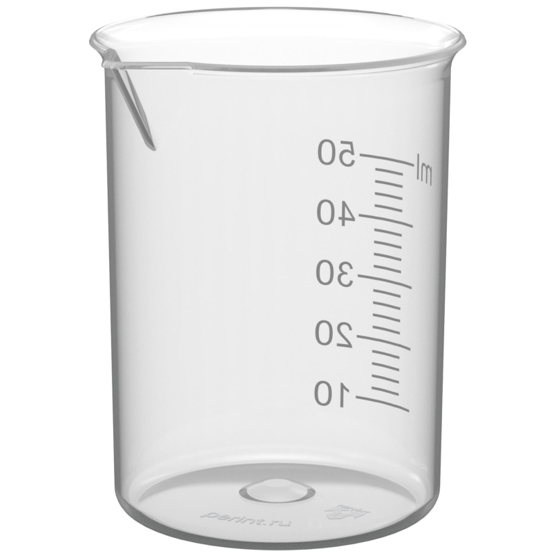 Мерный стакан объемом 50 мл предназначен для отмеривания ориентировочного объема жидких, сыпучих и порошкообразных пищевых продуктов/реактивов/буферных растворов, фильтрования и приготовления реагентов/растворов и т.п. Изготовлен из полипропилена. Нестираемая градуировка нанесена на стороне, противоположной от носика стакана. Срок годности 3 года.