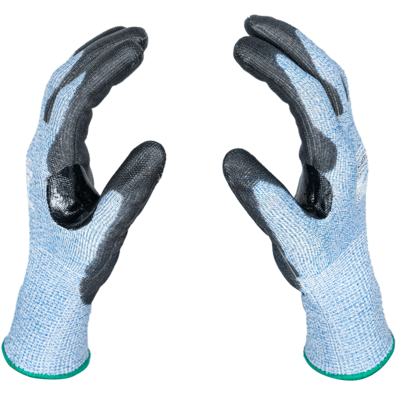 Перчатки для защиты от порезов Scaffa Рубеж с полиуретановым покрытием класс защиты C (10) (15 класс вязки, размер 7 (S)). Scaffa Рубеж ПУ С - качественные перчатки, которые защищают руки во время строительных и промышленных работ. Перчатка изготовлена из полиэтилена высокого давления и стекловолокна - их сочетание повышает сопротивляемость изделия к порезам и проколам. Бесшовная основа из нейлона не натирает кожу и не снижает ее чувствительность. Защитное покрытие изготовлено из плотного полиуретана - оно покрывает ладонь и напалки с тыльной стороны, между большим и указательным пальцами есть усиление. Материал обеспечивает крепкий захват как сухих, так и влажных поверхностей. Удлиненный манжет защищает запястье и предотвращает попадание внутрь мусора и вредных веществ. Цвет напульсника определяет размер изделия. Перчатки комфортно носить много часов подряд. Они подходят для: - использования при строительных работах; - работы с режущим инструментом, стеклом или металлическими деталями с острыми, неровными краями. Защитные свойства перчатки соответствуют стандарту EN388: 2016 - 4Х43С: - стойкость к истиранию: 4 уровень. Материал выдерживает не менее 8000 циклов истирания, прежде чем начнет изнашиваться; - стойкость к разрыву: 4 уровень. Перчатка выдерживает нагрузку в 75 Н без разрыва; - стойкость к проколу: 3 уровень. Материал выдерживает нагрузку в 100 Н без прокола; - стойкость к порезу: уровень С. Перчатка выдерживает нагрузку в 10 Н без пореза. Уровень С -средний уровень стойкости к порезу. Перчатка соответствует стандартам: - ТР ТС 019/2011; - ГОСТ 12.4.252-2013; - ГОСТ 12.4.183-91. Длина изделия - 220 мм, размер 7, в упаковке 1 пара.
