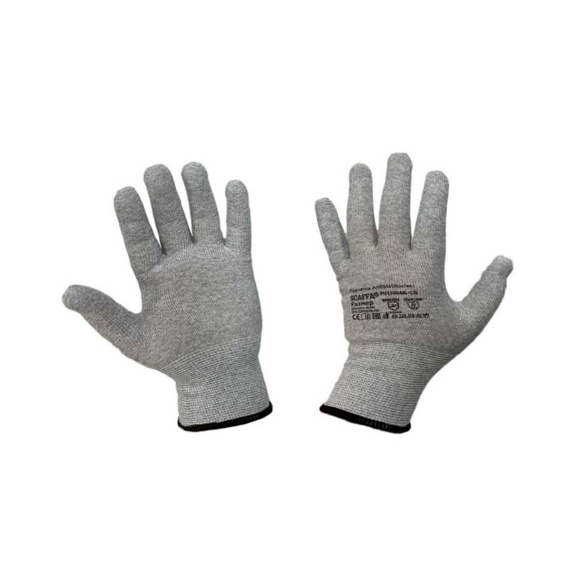 Перчатки рабочие защитные Scaffa Antistat Контакт нейлоновые серые (13 класс, размер 8 (M)). Scaffa ANTISTAT КОНТАКТ - качественные перчатки для защиты рук от механических повреждений и работы с микроэлектроникой. Основа изготавливается из нейлона и карбоновой нити - она рассеивает заряд и придает изделию антистатические свойства. Удлиненный манжет защищает, цвет напульсника на нем определяет размер изделия. Функция Touch Screen позволяет пользоваться устройствами с сенсорным экраном, не снимая перчатки. Изделие эффективно отводит тепло, его комфортно носить много часов подряд. Они подходят для работы с микроэлектроникой или использования в быту. Защитные свойства перчатки соответствуют стандарту EN388: 2016 - 1131А: - стойкость к истиранию: 1 уровень. Материал выдерживает не менее 100 циклов истирания, прежде чем начнет изнашиваться; - стойкость к разрыву: 3 уровень. Перчатка выдерживает нагрузку в 50 Н без разрыва; - стойкость к порезу: уровень 1, индекс стойкости: не менее 1.2. Стойкость по EN ISO13997: уровень А (выдерживает нагрузку в 2 Н); - стойкость к проколу: уровень 1 (не менее 20 Н). Перчатка соответствует стандартам: - ТР ТС 019/2011; - ГОСТ 12.4.252-2013; - ГОСТ 12.4.183-91; - ГОСТ Р ЕН 1149-5-2008. Длина изделия - 230 мм, размер 8, в упаковке 1 пара.