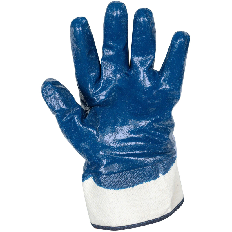 Перчатки рабочие защитные Scaffa NBR4515 хлопковые с нитрильным покрытием белые/синие (размер 10 (XL)). Scaffa NBR4515 - прочные перчатки для защиты рук от механических. Основа перчатки изготовлена из трикотажной ткани джерси, частично покрыта нитрилом. Прочная крага защищает руку до локтя. Перчатки маслобензостойкие, защищают руку от воздействия слабых растворов кислот и не препятствуют проникновению внутрь вредных веществ. Не вызывают дискомфорта при длительной носке. Рекомендуются к использованию: - для работ, связанных с обработкой грубых поверхностей; - для сборки и обслуживания оборудования; - для складских операций; - во время строительных работы. Защитные свойства перчатки соответствуют стандарту EN388: 2016 - 4111X: - стойкость к истиранию: 4 уровень. Материал выдерживает не менее 8000 циклов истирания, прежде чем начнет изнашиваться; - стойкость к разрыву: 1 уровень. Перчатка выдерживает нагрузку в 10 Н без разрыва; - стойкость к порезу: уровень 1, индекс стойкости: не менее 1.2; - стойкость к проколу: уровень 1 (не менее 20 Н). Перчатка соответствует стандартам: - ТР ТС 019/2011; - ГОСТ 12.4.103-2020. Длина изделия - 260 мм, размер 10, в упаковке 1 пара.
