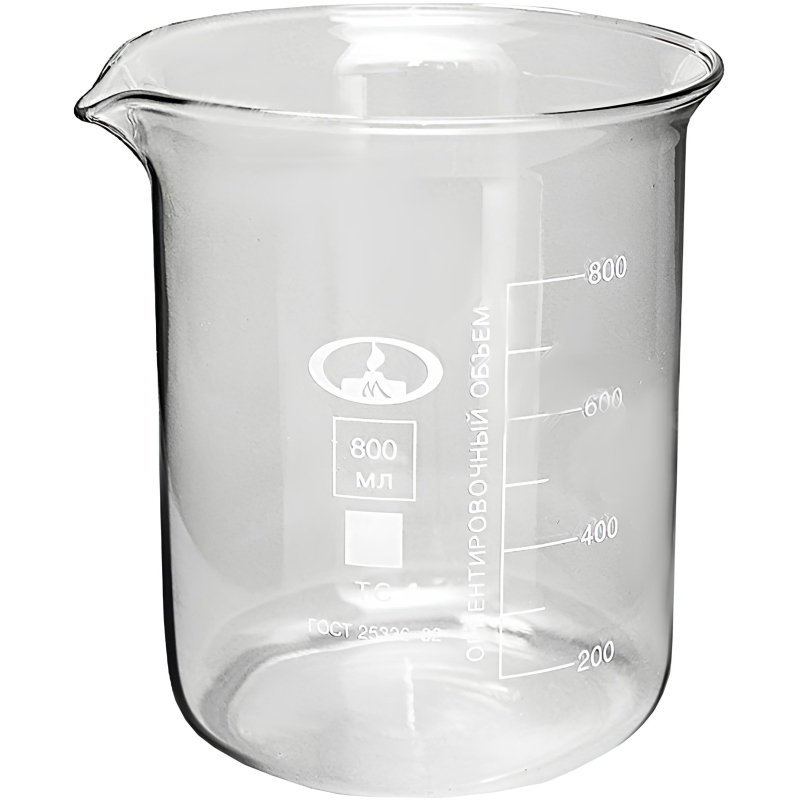 Разработан для выполнения большинства химических процедур. Изготовлен по ТУ 9464-019-29508133-2015 в соответствии с техническими требованиями ГОСТ 25336-82. Имеет ориентировочную шкалу. Изготовлен из стекла марки ТС по ГОСТ 21400-75. Объем - 800 мл. Цена деления - 100 мл. Диаметр - 100+2,0 мм. Высота - 135+3,0 мм.
