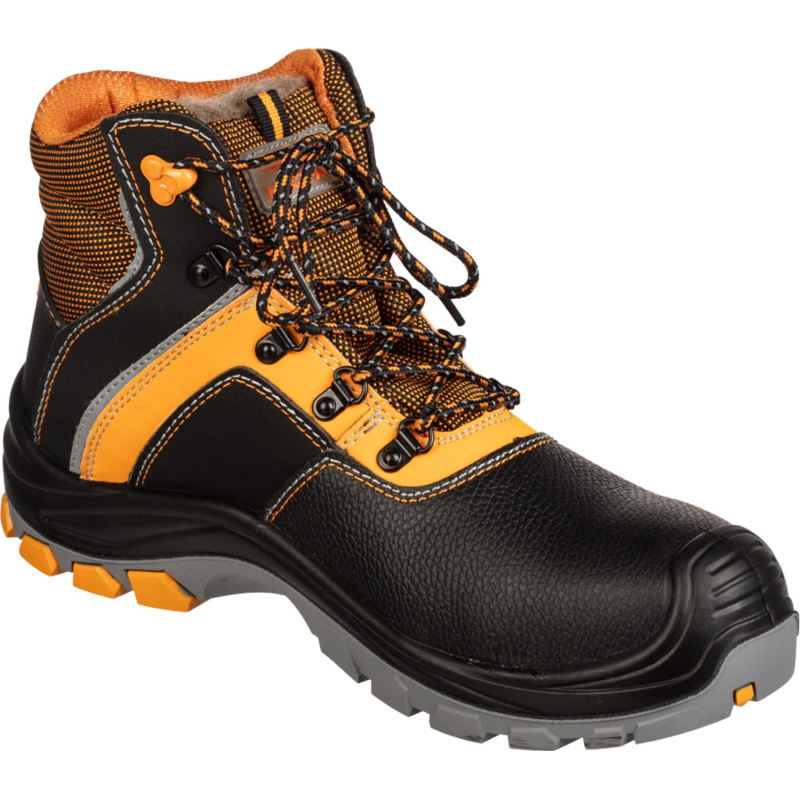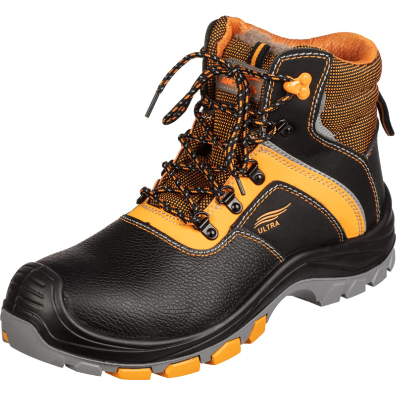 Ботинки Мистраль Ultra предназначены для работы в любой отрасли, но не предназначены для сварочных работ и работ с высококонцентрированными кислотами. Выполнены в черном и оранжевом цвете. Размер 47. Материал верха- термоустойчивая водоотталкивающая натуральная кожа (юфть) толщиной 1,8-2,0 мм. Вставки из микрофибры. Высота ботинка- 17 см. Подошва - двухслойная, устойчивая к воздействию нефти, нефтепродуктов, щелочей концентрации до 20%, повышенных температур. Верхний слой из полиуретана обладает амортизирующими свойствами, гасит ударные нагрузки, а также придает обуви легкость, комфортность и повышенные теплозащитные свойства. Ходовой слой изготовлен из износостойкой, термостойкой (+300°С / 60 с), морозостойкой резины на основе нитрильного каучука с улучшенным сопротивлением скольжению, стойкостью к деформациям, истиранию. Носочная часть имеет дополнительную защиту в виде полиуретановой накладки, предотвращающей механические повреждения обуви и препятствующей проникновению холода. Для защиты от ударов в носочной части стопы в обуви применяется композитный (поликарбонатный) подносок (Мун 200), имеющий конфигурацию, препятствующую надавливанию верхнего края на стопу, и оборудованный прокладкой из полиуретана. Соответствует стандартам ТР ТС 019/2011. Срок эксплуатации после выдачи обуви составляет 70 дней при соблюдении правил ухода, эксплуатации и хранения. Цвет на изображении товара в интернет-магазине или в печатном каталоге может отличаться от оригинала из-за особенностей цветопередачи монитора.