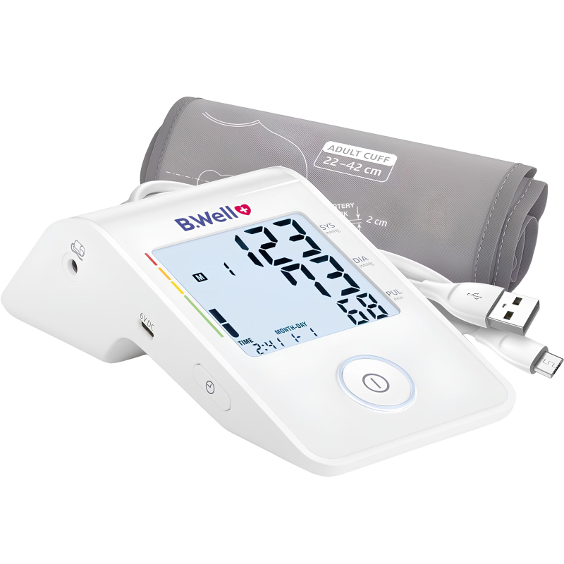 ?Автоматический тонометр для измерения давления на? ?плечо B.Well MED-53? ?с USB-кабелем. Медицинский прибор для измерения давления разработан в? ?Швейцарии??.? ?Измерение с? ?технологией Intellect Active комфортно, так как происходит уже на? ?этапе накачивания манжеты??.? ?Тонометр для измерения давления MED-53? ?с USB-кабелем одобрен Российским кардиологическим обществом??.? ?Индикатор аритмии помогает избежать болезней сердца??.? ?Автоматический тонометр для измерения давления универсален. Размер манжеты M-L (22-42? ?см) подходит большинству пользователей. Анатомичный крой создает комфортное прилегание??.? ?В? ?целях гигиены чехол манжеты можно стирать, вынув пневмокамеру??.? ?Автоматический тонометр сохраняет 90? ?результатов с? ?датой и? ?временем. В? ?гостевом режиме данные не? ?записываются??.? ?Прибор для измерения давления показывает, правильно? ?ли зафиксирована манжета, что способствует корректному проведению измерения??.? ?Тонометр работает от обычного адаптера micro USB или от 4 стандартных батареек ААА.?