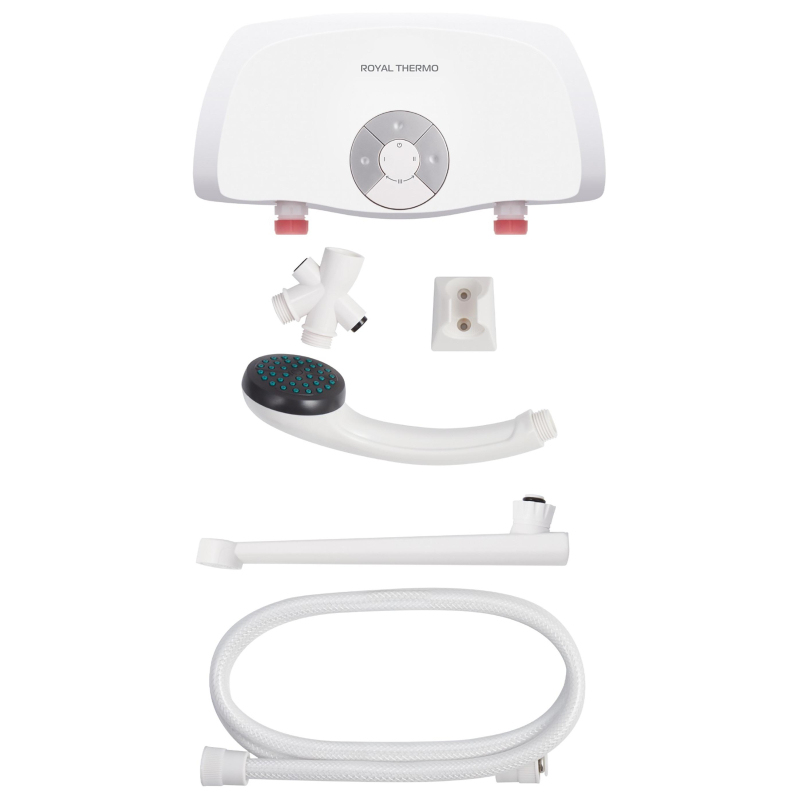 Водонагреватель проточный Royal Thermo SmartFix TS (3,5 kW)Проточные водонагреватели SmartFix отличаются высокой производительностью по нагреву воды, которая достигается за счет применения мощных нагревательных элементов из меди. Предназначен для одной точки водоразбора.У моделей 3,5 кВт сетевой кабель с вилкой входит в комплект. У моделей 5,5 и 6,5 кВт в комплектацию не входит сетевой кабель, кабель докупается отдельно.Система управленияГидравлическая система управления, которая дает возможность поддерживать температуру воды в зависимости от величины потока и регулировок смесителя.Предусмотрены три режима мощности, что позволяет экономить электроэнергию и повышать производительность прибора от минимальной до максимальной.ПроизводительностьОтличается высокой производительностью по нагреву воды. Это достигается благодаря мощному спиральному нагревательному элементу.БезопасностьВодонагреватель оснащен датчиком давления, а также специальным термостатом, который обеспечивает защиту водонагревателя от перегрева.Удобство в эксплуатацииЛегко и быстро подключается к стационарному смесителю, став отличным решением на время отключений горячей воды.Водонагреватель SmartFix поставляется в трех вариантах комплектации: кран (T), душ (S), кран + душ (TS).Гарантия 2 года.Внешний вид и/или характеристики товара могут быть изменены производителем в соответствии с производственным процессом.