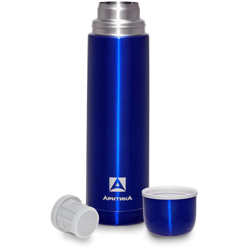 Термос Арктика 1 л синий. Простой и удобный термос для напитков, точно станет таким подарком, которому будут рады. Двойная вакуумная стенка и пробка с термоизолятором позволяют термосу держать тепло или холод долгое время. Удобные каналы для налива на пробке позволяют безопасно наливать напиток в крышку-чашку без расплескивания. Подойдет как для поездок на природу, так и для использования дома. Обем термокружки: 1 л.