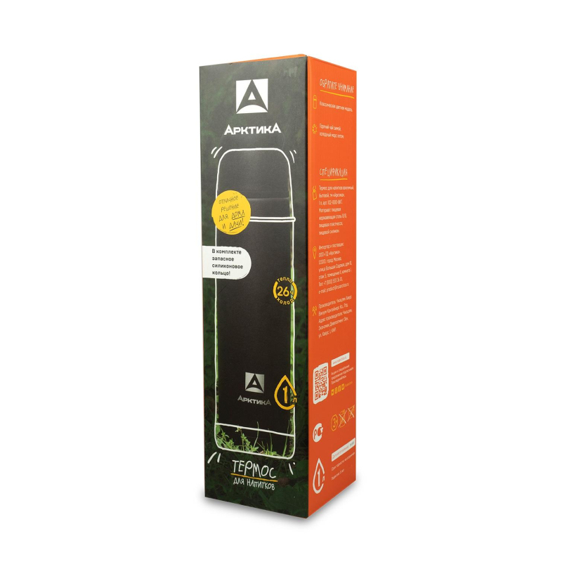 Термос Арктика 1 л черный. Простой и удобный термос для напитков, точно станет таким подарком, которому будут рады. Двойная вакуумная стенка и пробка с термоизолятором позволяют термосу держать тепло или холод долгое время. Удобные каналы для налива на пробке позволяют безопасно наливать напиток в крышку-чашку без расплескивания. Подойдет как для поездок на природу, так и для использования дома. Объем термокружки: 1 л.