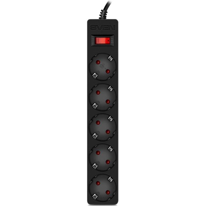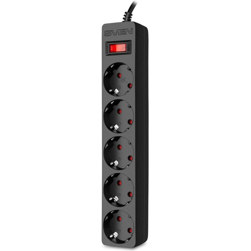 Сетевой фильтр SVEN SF-05E 1,8 м (1,8м/5р защит шторки) черный(SV-021559)
