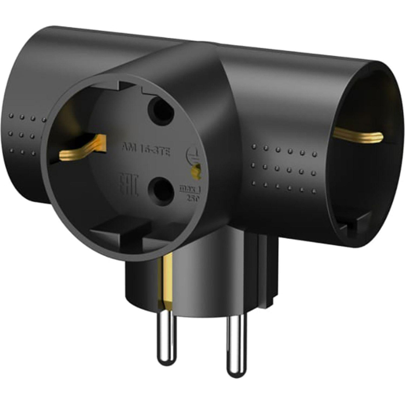 Разветвитель тройник, Т-обр. ФОТОН АМ 16-3ТЕ, 16А/4000Вт, с зазем, черный