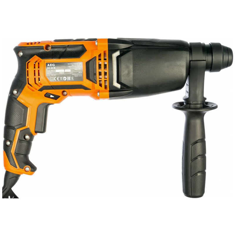 Домашних дел мастер Если надо штробить каналы под проводку, отбивать старый кафель, сверлить отверстия в бетоне, возьмите в руки перфоратор AEG KH24IE. Мощность его двигателя составляет 800 Вт, а энергия удара - 2,4 Дж. При этом инструмент весит всего 2,8 кг. Он работает в трех режимах: сверление, сверление с ударом и долбление - и отлично справится с любыми бытовыми задачами. Подходит также для выполнения мелких профессиональных работ. Работать проще простого Для смены бура вам не потребуется дополнительный инструмент, так как перфоратор оснащен патроном SDS-plus для быстрой замены рабочей оснастки. Возможность поворота долота в режиме долбления обеспечивает удобство во время работы под разными углами, в том числе в 45°. Эта функция пригодится для демонтажных работ, например, скола кафельной плитки.