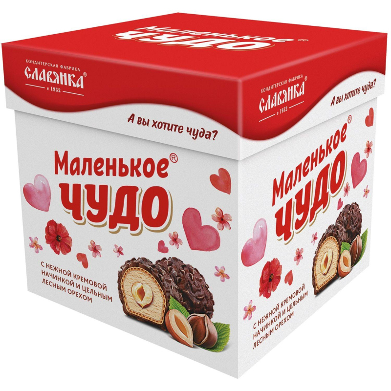 Вафельная конфета с нежной кремовой начинкой, целым орехом, посыпанная дробленым арахисом и покрытая шоколадной глазурью. Состав: сахар, арахис (дробленый, тертый), заменитель масла какао (масло растительное, эмульгаторы (Е492, лецитин соевый)), масло кокосовое, мука пшеничная, сыворотка молочная сухая, жир растительный (масло растительное, эмульгатор лецитин соевый, антиокислитель концентрат смеси токоферолов), ядра фундука (целые, тертые), какао-порошок, крахмал кукурузный, эмульгаторы (лецитин соевый, эфиры полиглицерина и взаимоэтерифицированных рициноловых кислот), продукты яичные, ароматизаторы, соль, пищевые волокна из отрубей: клетчатка пищевая, жир молочный, разрыхлитель гидрокарбонат натрия, регулятор кислотности лимонная кислота. Вес: 148 г. Пищевая ценность: жиры - 40 г, белки - 9.5 г, углеводы - 44.9 г. Энергетическая ценность: 574 ккал. Срок годности: 6 месяцев. Условия хранения: хранить при температуре 18 С и относительной влажности воздуха не более 75%. Производитель: Славянка. Страна производства: Россия.