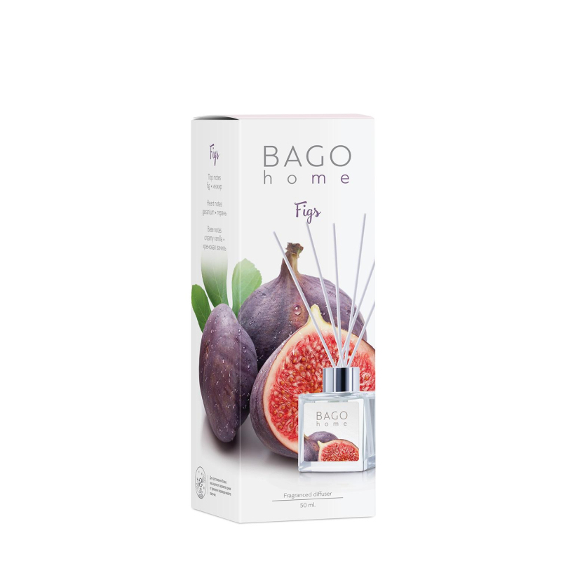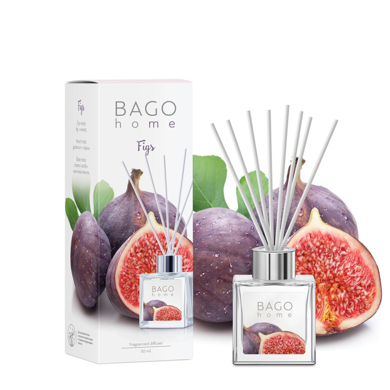 Ароматический диффузор Инжир 50 мл. Время работы: 4-6 недель. Площадь ароматизации: 5-15 м?. В комплекте 6 фибровых палочек из прессованного волокна.