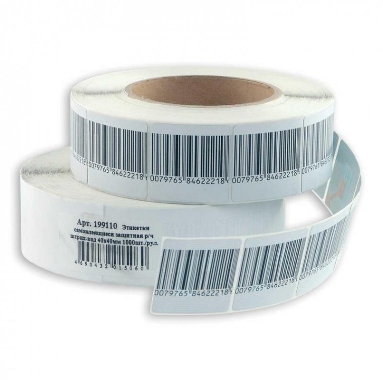 Этикетки самоклеящиеся защитные, радиочастотный штрих-код (40х40 мм, рулон 1000 штук)