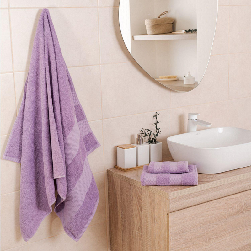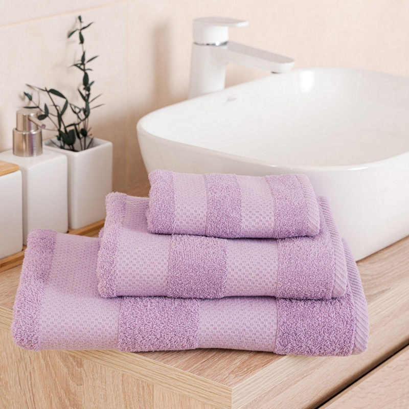 Полотенце махровое Конфетти 50x90 см 390 г/кв.м лавандовое. Универсальная коллекция однотонных полотенец с оригинальным тканым бордюром. Полотенца имеют идеальную плотность 390 г/кв.м. Не линяют, не выцветают. Впитывают и быстро сохнут, имеют стильный двойной бордюр. Полотенце используется для рук и лица. Размер полотенца: 50x90 см. Состав ткани: 100% хлопок. Рекомендации по уходу: бережная машинная стирка при температуре не выше 40 градусов. Упаковка: пакет ПВХ. Внимание! Перед первым использованием обязательна стирка! Внешний вид и/или характеристики товара могут быть изменены производителем в соответствии с производственным процессом. Товар относится к ценовому сегменту "эконом". Имеет базовые характеристики и более простую упаковку. Отвечает основным требованиям потребления.