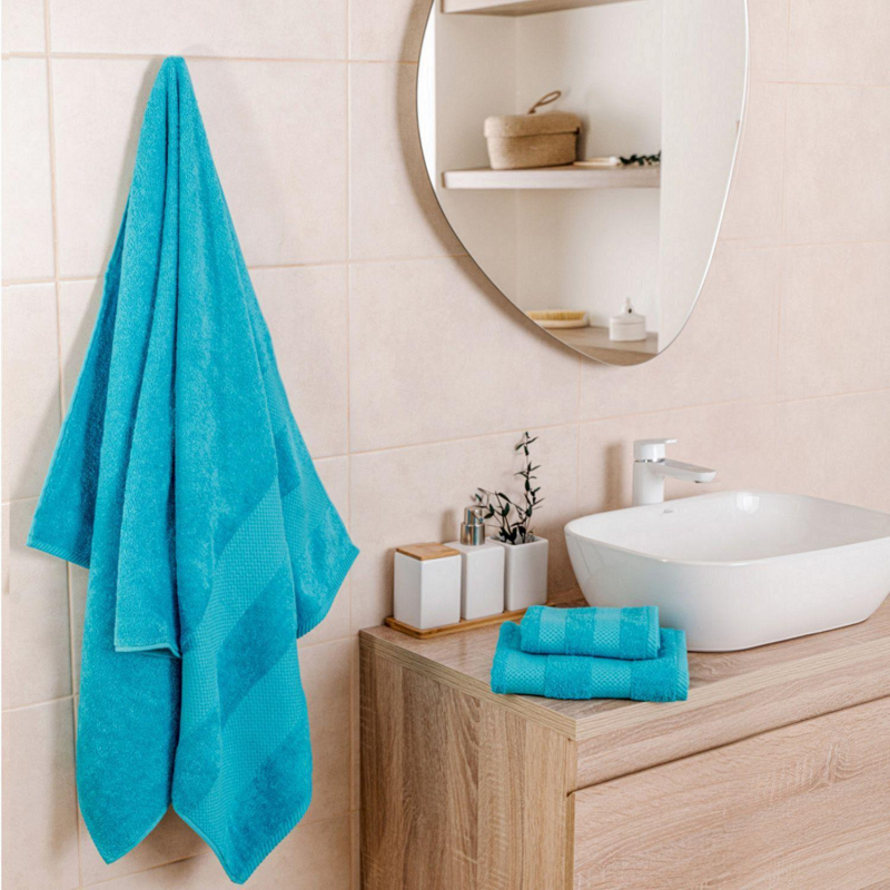 Полотенце махровое Конфетти 50x90 см 390 г/кв.м голубое. Универсальная коллекция однотонных полотенец с оригинальным тканым бордюром. Полотенца имеют идеальную плотность 390 г/кв.м. Не линяют, не выцветают. Впитывают и быстро сохнут, имеют стильный двойной бордюр. Полотенце используется для рук и лица. Размер полотенца: 50x90 см. Состав ткани: 100% хлопок. Рекомендации по уходу: бережная машинная стирка при температуре не выше 40 градусов. Упаковка: пакет ПВХ. Внимание! Перед первым использованием обязательна стирка! Внешний вид и/или характеристики товара могут быть изменены производителем в соответствии с производственным процессом.