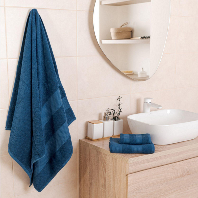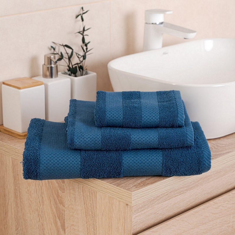 Полотенце махровое Конфетти 50x90 см 390 г/кв.м синее. Универсальная коллекция однотонных полотенец с оригинальным тканым бордюром. Полотенца имеют идеальную плотность 390 г/кв.м. Не линяют, не выцветают. Впитывают и быстро сохнут, имеют стильный двойной бордюр. Полотенце используется для рук и лица. Размер полотенца: 50x90 см. Состав ткани: 100% хлопок. Рекомендации по уходу: бережная машинная стирка при температуре не выше 40 градусов. Упаковка: пакет ПВХ. Внимание! Перед первым использованием обязательна стирка! Внешний вид и/или характеристики товара могут быть изменены производителем в соответствии с производственным процессом.
