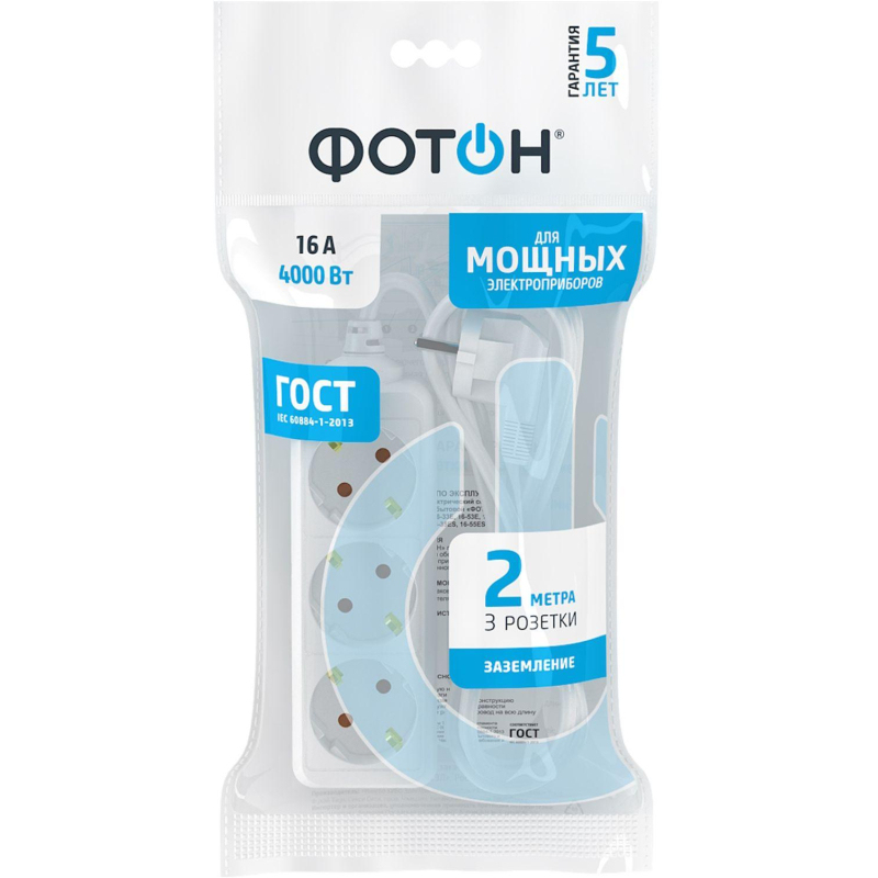 Удлинитель ФОТОН 16-23Е 3 розетки 2 м с заземлениемВнешний вид и/или характеристики товара могут быть изменены производителем в соответствии c производственным процессом