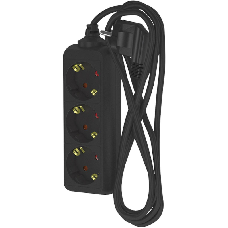 Удлинитель сетевой ФОТОН 16-33Е, 3м, 3 розетки, 16А, с заземл.,Черный