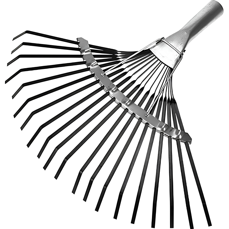 Грабли веерные из стали 20 зубьев с черенком 120 см, общая длина в сборе 145 см.Многофункциональные грабли для листьев среднего размера, предназначенные для работ на небольших площадях, вокруг деревьев или под кустарниками.Ширина рабочей части: 39 см. Это позволяет работать граблями в более узком пространстве за считанные секунды.Длина рабочей части: 35 см.Подходят для небольших поверхностей, вокруг деревьев, под кустарниками. Средние грабли подходят для неровных поверхностей. Каждый зубец обладает пружинящим эффектом. Так что при наступлении осеннего листопада, можно очистить газон за считанные мгновенья.Вес: 1100 г.