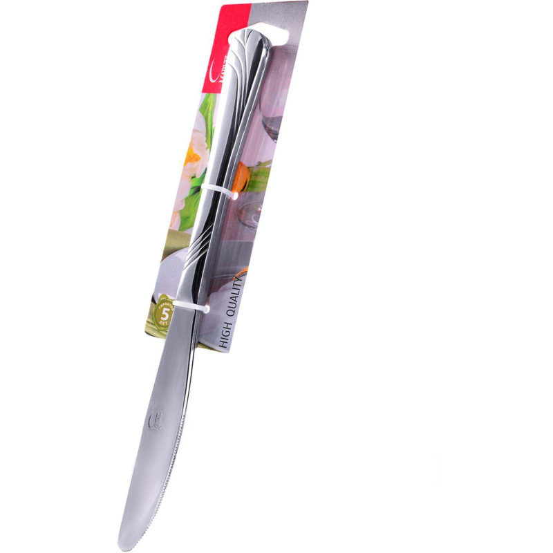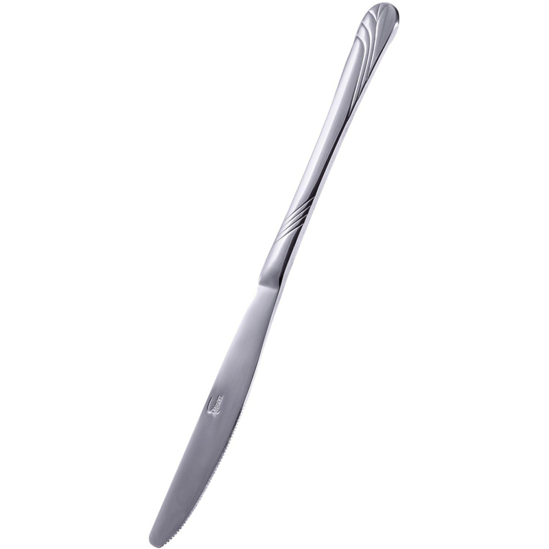 Нож столовый Marvel (511) 23 см нержавеющая сталь (2 штуки в упаковке). Столовые приборы изготовлены из стали 430, являются приборами высокого класса. Ослепительный блеск, функциональность, надежность, изысканная элегантность и утонченность стиля - все это ярко отличает столовые приборы фирмы Mielaje. В нержавеющей стали 430 содержится никеля (0,85%), не более 0,8% углерода и не менее 50% железа. Хром связывает кислород на поверхности продукта, образуя пленку, защищающую железо от окисления (ржавчины). Никель также повышает коррозионную стойкость нержавеющей стали. Следовательно, чем выше содержание никеля, более устойчива нержавеющая сталь к коррозии. Сталь марки 430 - это сталь высокого качества (сталь, легированная хромом, никелем и марганцем, сохраняющая при охлаждении до комнатной и ниже структуру твердого расплавленного раствора - аустенита) с низким содержанием углерода Данная сталь долго сохраняет свой первоначальный внешний вид даже при интенсивном использовании и регулярном мытье, благодаря высокому качеству материала используемого для их изготовления. Для изготовления столовых приборов мы используем материалы исключительно безупречного качества и самые современные технологии их обработки. Отменный блеск, наших столовых приборов, является результатом многоуровневого процесса технологической полировки. Благодаря этому приборы максимально долго остаются гладкими и блестящими. Приобретая столовые приборы Mielaje, будьте, уверены в долговечности изделий и в его непревзойденном дизайне.