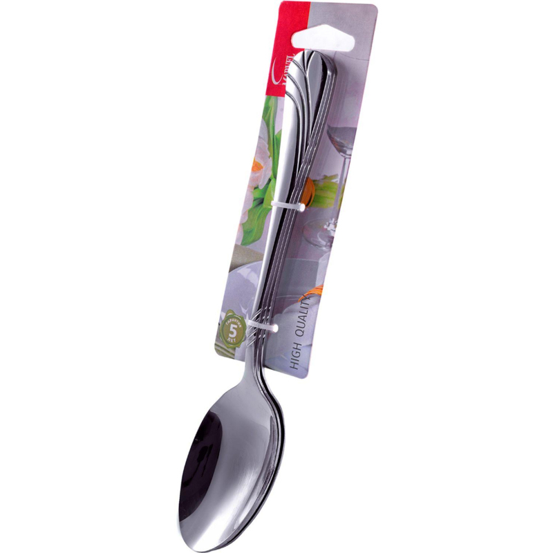 Ложка столовая Mielaje (512) 20.5 см нержавеющая сталь (3 штуки в упаковке). Столовые приборы изготовлены из стали 430, являются приборами высокого класса. Ослепительный блеск, функциональность, надежность, изысканная элегантность и утонченность стиля - все это ярко отличает столовые приборы фирмы Mielaje. В нержавеющей стали 430 содержится никеля (0.85%), не более 0.8% углерода и не менее 50% железа. Хром связывает кислород на поверхности продукта, образуя пленку, защищающую железо от окисления (ржавчины). Никель также повышает коррозионную стойкость нержавеющей стали. Следовательно, чем выше содержание никеля, более устойчива нержавеющая сталь к коррозии. Сталь марки 430 - это сталь высокого качества (сталь, легированная хромом, никелем и марганцем, сохраняющая при охлаждении до комнатной и ниже структуру твердого расплавленного раствора - аустенита) с низким содержанием углерода Данная сталь долго сохраняет свой первоначальный внешний вид даже при интенсивном использовании и регулярном мытье, благодаря высокому качеству материала используемого для их изготовления. Для изготовления столовых приборов мы используем материалы исключительно безупречного качества и самые современные технологии их обработки. Отменный блеск, наших столовых приборов, является результатом многоуровневого процесса технологической полировки. Благодаря этому приборы максимально долго остаются гладкими и блестящими. Приобретая столовые приборы Mielaje, будьте, уверены в долговечности изделий и в его непревзойденном дизайне.