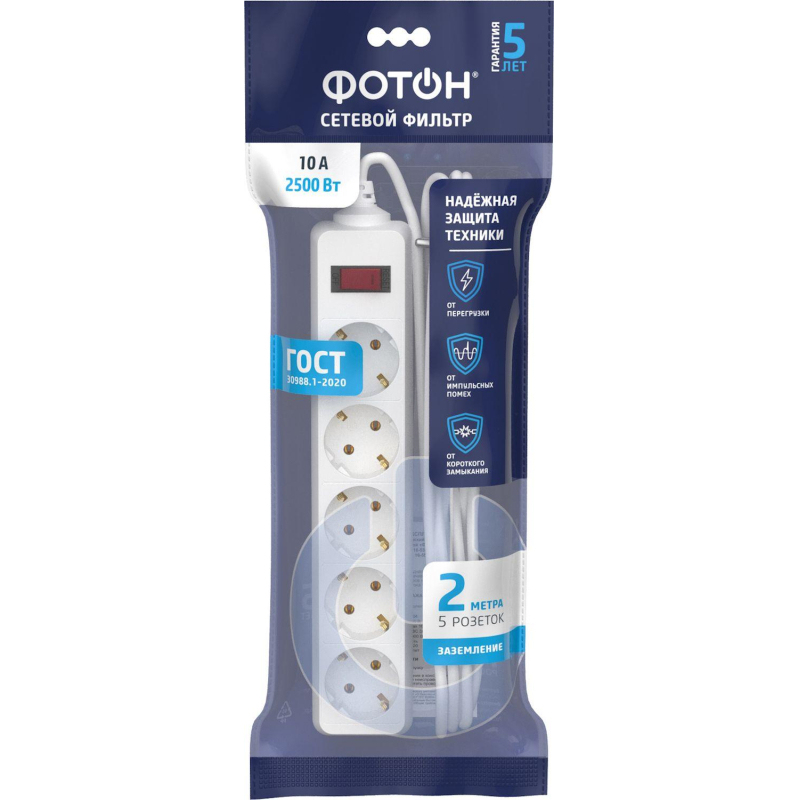Сетевой фильтр Фотон SP 10-25ES на 5 розеток 2 метра (25374) Внешний вид и/или характеристики товара могут быть изменены производителем в соответствии с производственным процессом.