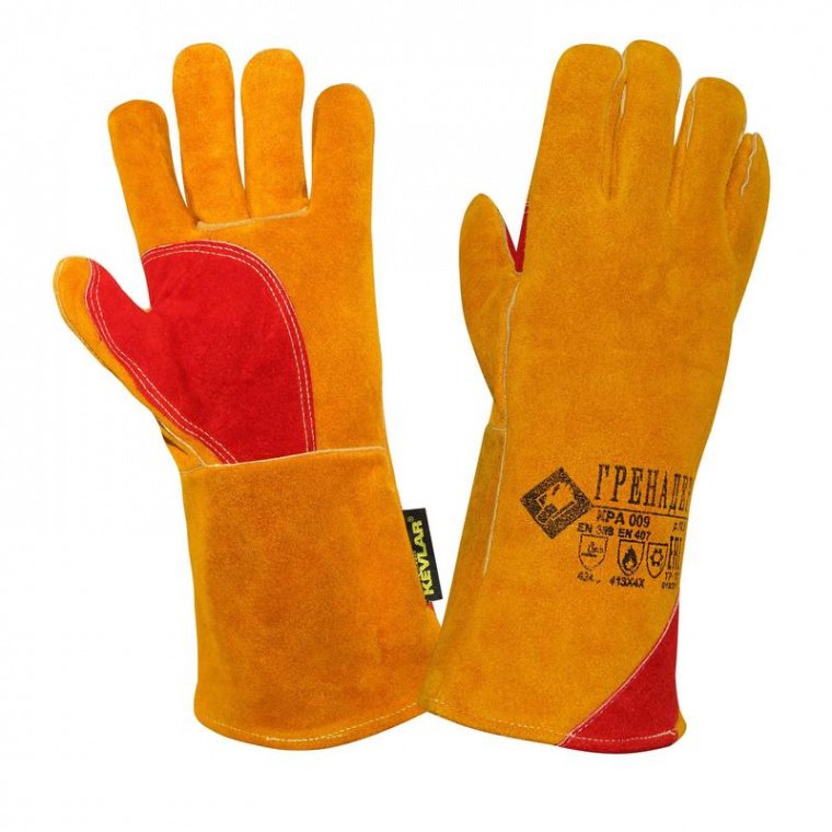 Краги спилковые утепленные пятипалые желтые меховые предназначены для защиты рук от механического воздействия, искр и брызг расплавленного металла в условиях низких температур. Швы — нить Кевлар, усилены кожаными вставками. Утеплены искуственным мехом. Размер — 10,5 (XL).