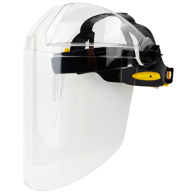 Инновационный дизайн классического щитка РОСОМЗ НБТ2 Визион Titan с наголовным креплением (424390). Щиток защитный Легкий щиток из поликарбоната защищает лицо от травм отлетающими частицами, от брызг жидкостей, искр металла и высокой температуры, от прямого попадания в органы дыхания пыли, аэрозолей, жидкостей, размер защитного экрана220x385. Облегченный вес - 333 г, единая деталь без дополнительных винтов и крепежей; Отсутствие оптических искажений - нет линии соединения козырька и экрана; Увеличенный угол обзора: пользователь может контролировать риски по бокам и сверху, самое лучшее периферийное зрение на рынке СИЗ на сегодня. Рекомендован для защиты лица при: - обработке металлов с использованием охлаждающих жидкостей; - работах, связанных с возможным образованием осколков; - в химических лабораториях при выполнении работ, связанных с разбрызгиванием агрессивных жидкостей; - работе с пневмо- и электроинструментами. - полностью прозрачная монолитная удлиненная снизу лицевая часть из ударопрочного и термостойкого поликарбоната. - наголовное крепление RAPID с мягким обтюратором. Виды защиты: - защита от УФ излучения; - защита от царапин; - защита от запотевания; - защита от кислот и щелочей; Тип крепления: наголовное. Диапазон рабочих температур: от -20С до +80С. Соответствует стандартам: ЕАЭС RU C-RU.АБ47.В.00018/19