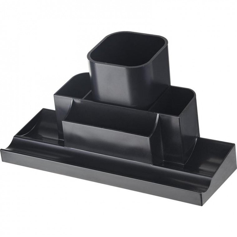 Подставка для канцелярских мелочей Uniplast «Башня» выполнена из полистирола черного цвета. Состоит из семи отделений. Используется для канцелярских мелочей и пишущих принадлежностей. Размеры: 22×12×12 см.