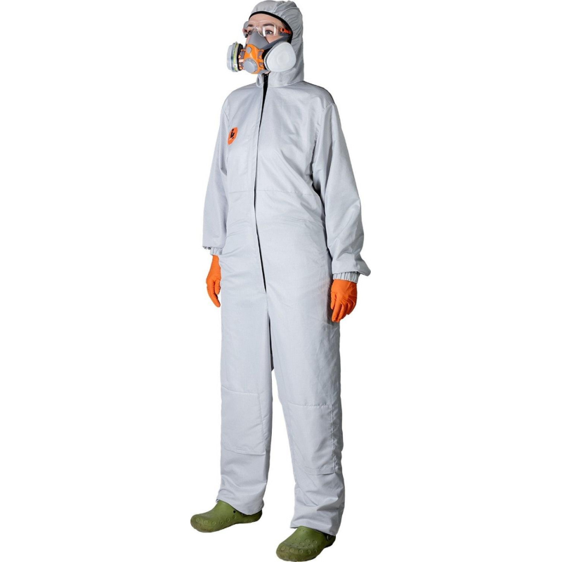 Комбинезон многоразовый защитный Jeta Safety JPC-175 Carbo-Master, размер L. Комбинезон предназначен для работ на легковоспламеняемых объектах и обладает антистатическим свойством, благодаря наличию в составе ткани карбона. Состав ткани 98% полиэфир, 2% карбон, плотность 70г/м2. Защитные свойства: Пс (от пыли стекловолокна, асбеста), Пм (от мелкодисперсной пыли), Пн (от нетоксичной пыли), Эс (от электростатических зарядов, полей). Дополнительные отталкивающие свойства обеспечивает пропитка из Teflon, выдерживающая многократные стирки. Тип защиты: 5. Защитная одежда от сухих частиц: защита всего тела от твердых переносимых по воздуху веществ. Модель включает защитные вставки на коленях с возможностью замены, вентилируемые вставки (спина, пах), эластичный пояс, манжеты, внутренний и внешний задний карманы, а также два бегунка на молнии. Трехпанельный капюшон удобно облегает голову, не оказывая при этом излишнего нажима. Сферы применения: работы в камере окраски, работы на легковоспламеняемых объектах, строительные работы, профессиональные малярные работы, деревообработка, работы с пылью. Размер L (52), рост 176-182 см.