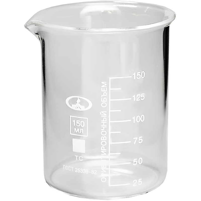 Разработан для выполнения большинства химических процедур. Изготовлен по ТУ 9464-019-29508133-2015 в соответствии с техническими требованиями ГОСТ 25336-82. Имеет ориентировочную шкалу. Изготовлен из стекла марки ТС по ГОСТ 21400-75. Объем - 150 мл. Цена деления - 25 мл. Диаметр - 60+1,5 мм. Высота - 80+2,0 мм.