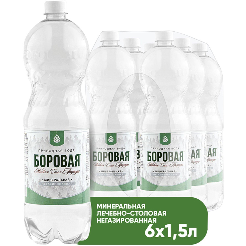 ?Вода минеральная питьевая лечебно-столовая сульфатно-кальциевая "Боровая"? ?- живая сила природы. Заповедные леса Березинского заповедника ограждают источник от? ?производственных и? ?сельскохозяйственных загрязнений и? ?позволяют сделать воду "Боровая" поистине природной, обогатив ее? ?полезными микроэлементами, и? ?самой экологически чистой во? ?всей Республике Беларусь. Уникальность минеральной питьевой воды заключается в? ?полном отсутствии в? ?ней хлорида натрия (поваренной соли), избыток которой приводит к? ?возникновению отеков, увеличению нагрузки на? ?почки, повышению артериального давления. В? ?то? ?же время, высокая концентрация в? ?ней сульфатов, кальция и? ?магния делает минеральную питьевую воду незаменимой при лечении гастритов с? ?повышенной кислотностью, язвенной болезни желудка, хронических колитов, заболеваний печени, почек, сахарного диабет и? ?др. заболеваний. Наличие в? ?составе минеральной питьевой воды метакремниевой кислоты значительно усиливает противовоспалительный эффект и? ?улучшает функцию печени. Также употребление минеральной питьевой воды "Боровая" показано при избыточном весе??.? ?Уровень pH? ?негазированной воды? ?- 7,50? ?pH. Минерализация? ?1,25-2,6? ?г/дм???. ??Анионы, мг/л: гидрокарбонаты? ?- 150???350; сульфаты? ?- 800-1400; хлориды? ?- 0-30. Катионы, мг/л: кальций 200-600, магний 20-100, натрий 5-30, калий 5-30??.? ?Объем: 1.5? ?л??.? ?Тип упаковки: пластиковая бутылка??.? ?Условия хранения: хранить при температуре от? ?5? ?до? ?22? ?°С??.? ?Страна производства: Республика Беларусь??.?