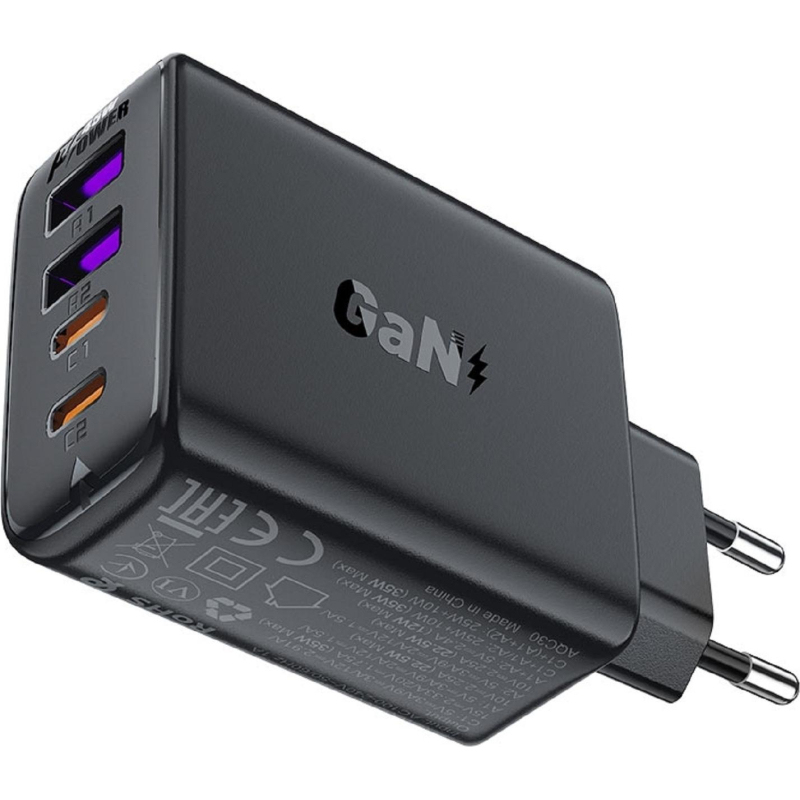 Зарядное устройство ACEFAST A61 PD45W GaN (2xUSB-C+2xUSB-A),сетевое,черный