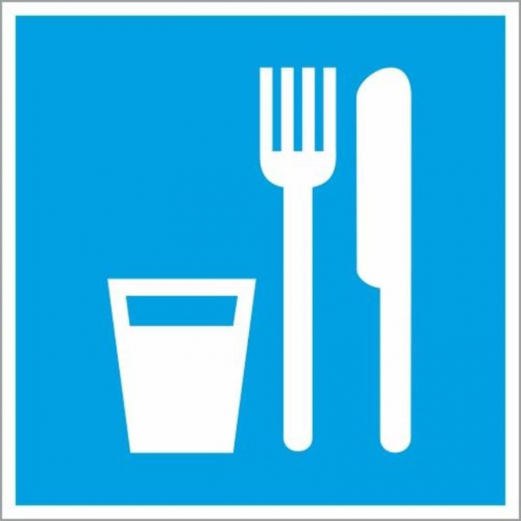 Указательный знак безопасности (наклейка) ’’Пункт (место) приема пищи’’, предназначенный для размещения на дверях столовых, буфетов и других мест, где разрешен прием пищи. Код знака: D01 Смысловое значение: Пункт (место) приема пищи. Знак квадратной формы с белым изображением на голубом фоне Хорошо держится на любом материале благодаря клеевой основе. Материал изготовления: самоклеящаяся пленка ПВХ Размер 200×200 мм. Товар поставляется в нескольких вариантах (без возможности выбора).