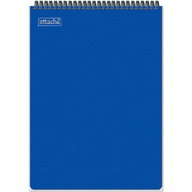 Блокнот Attache практичного дизайна: однотонная пластиковая обложка синего, непрозрачного цвета с тиснением и логотипом. Обложка защищает бумагу от деформации и загрязнения. Блокнот стандартного формата А4 (размер — 210×294 мм), состоящий из 80 листов (160 страниц). Закреплен на спираль по верхнему краю. Плотные листы с разлиновкой в клетку в блокноте изготовлены из офсетной бумаги высокого качества, плотностью 60 г/кв.м.