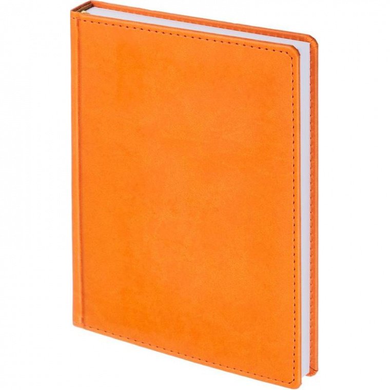 Ежедневник недатированнный Attache, цвет оранжевый. Коллекция «Сиам». Формата А5 (137×203 мм), размер изделия — 143×210 мм, традиционного дизайна. Твердая обложка с прострочкой по периметру выполнена из искусственной кожи высокого качества. Возможно нанесение логотипа на обложку, любым способом тиснения (блинт или фольга). Блок: недатированный, 176 листов (352 страницы) белой офсетной бумаги, плотностью 80 г/кв.м., перфорация уголков, ляссе, 1 краска. Дополнительный блок со справочной информацией включает телефоны первой необходимости, международные коды городов мира и городов России, растояния между городами Европы и СНГ, размер одежды, штриховой код, Знаки зодиака, доменные зоны мира, карта поясного времени, питание и расход калорий, , неметрические единицы, форматы бумаги,календарь на 2020-2023 гг. На один день недели приходится одна страница. На форзаце напечатаны карты России и мира.