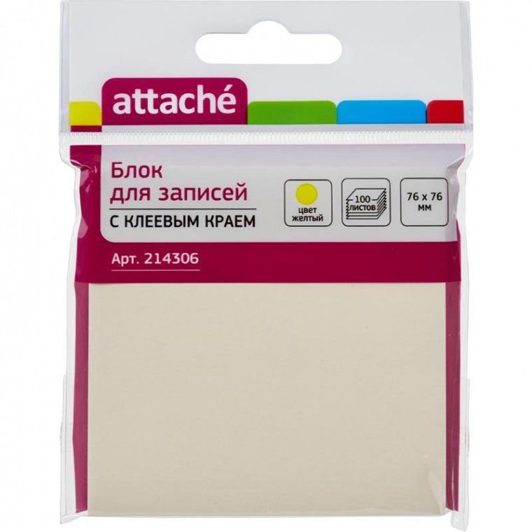 Стикеры Z-сложения Attache для диспенсеров подойдут в любые Z-диспенсеры. Цвет: желтый, в блоке 100 листов. Длина клейкой стороны 76 мм. Клеевая система с клейкостью — 18 Н/м. После удаления бумаги на поверхности не остается следов клеевого состава, лист можно крепить повторно. Бумага плотностью 62 г/кв.м. имеет особое покрытие, благодаря которому листочки легко отделяются от блока, меньше закручиваются, на них можно делать надписи любыми пишущими принадлежностями в любом месте. Формат 76×76 мм. Особых условий хранения не требует, сертификации не подлежит, срок годности не ограничен.